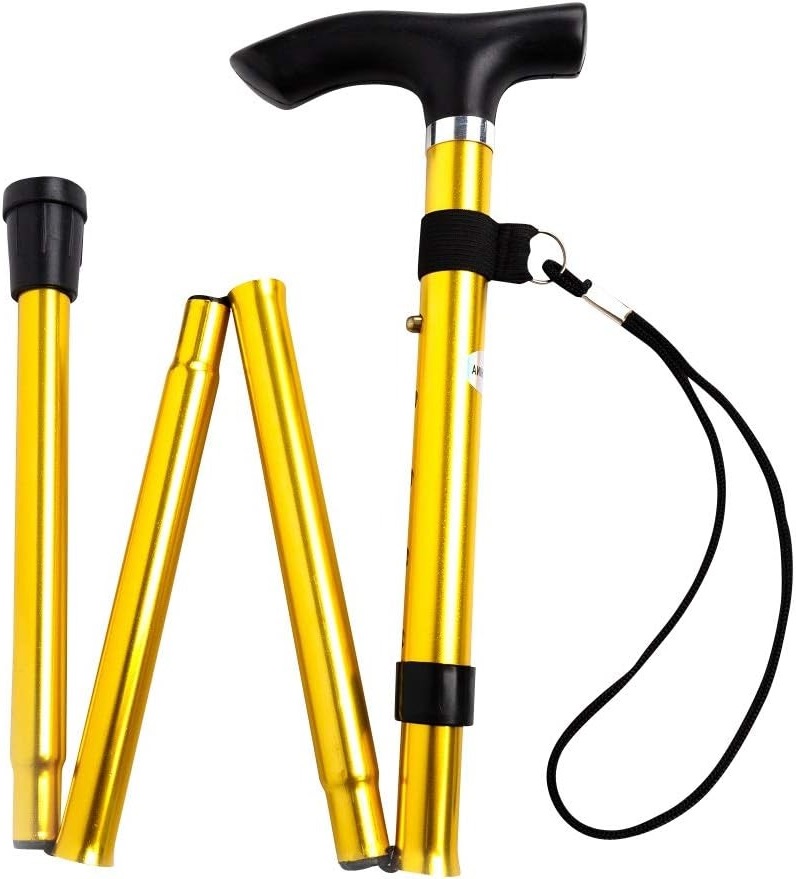 Baston ortopedic pliabil, usor, din aluminiu, 92 cm, auriu/galben Baston ortopedic pliabil, usor, din aluminiu, 92 cm, auriu/galben