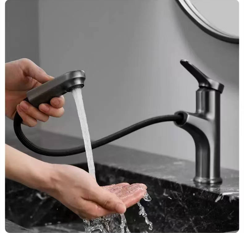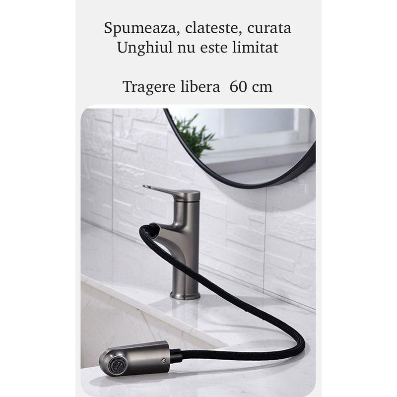 4. Design functional si estetic: Dusul extractibil ofera o mare flexibilitate in utilizare, permitand ajustarea usoara si precisa a directiei si a fluxului de apa pentru o experienta personalizata si comoda. Imbinand functionalitatea cu estetica, aceasta baterie sanitara nu numai ca indeplineste cerintele practice, ci si completeaza aspectul general al baii tale, aducandu-i un plus de stil si eleganta.