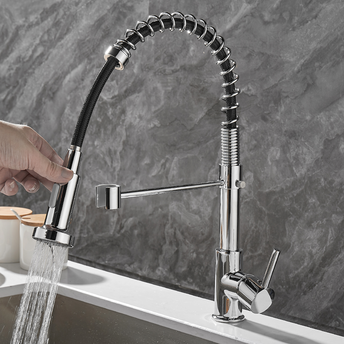 Design cu arc inalt si furtun flexibil: Acestea va permit sa umpleti si sa spalati orice oala sau tigaie si de asemenea sa ajungeti in orice colt al chiuvetei. Furtunul poate fi extins circa 50cm, facilitant astfel curatarea si clatirea.