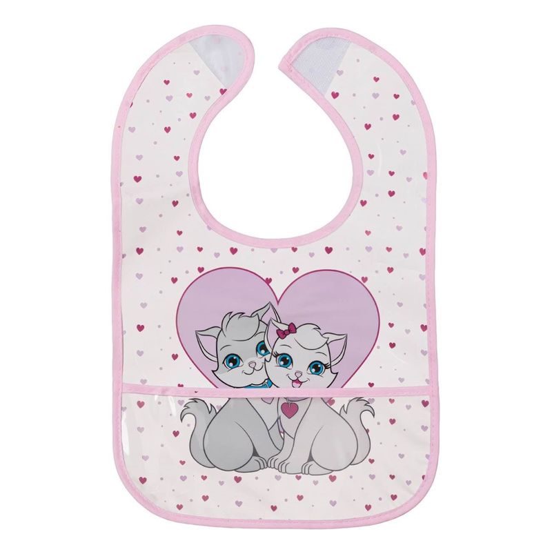 Baveta copii, model inimi si pisicute, peva, margine roz, 23 x 20.5 cm, 6+ luni Baveta copii, model inimi si pisicute, peva, margine roz, 23 x 20.5 cm, 6+ luni
