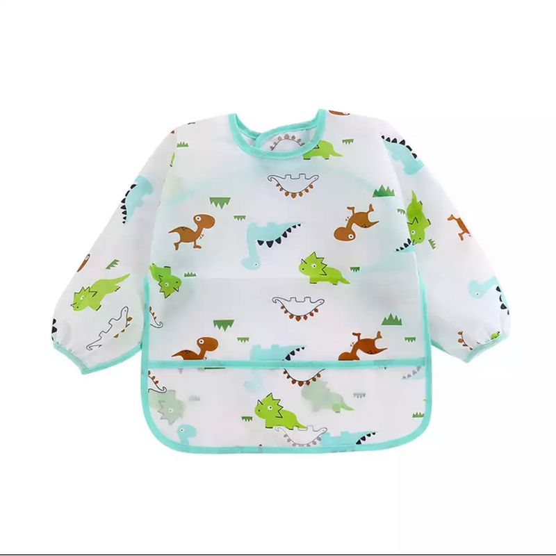 Baveta cu maneci lungi, impermeabila, alb cu turcoaz, 0-3 ani Baveta cu maneci lungi, impermeabila, alb cu turcoaz, 0-3 ani
