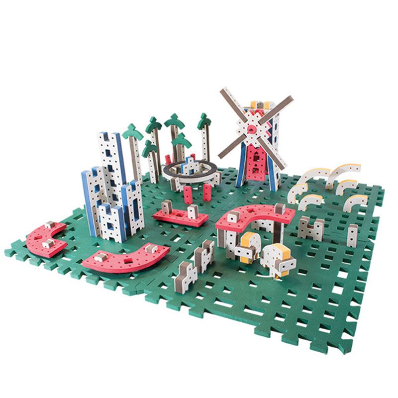 Baza pentru constructii cu blocuri de spuma Baza de constructie BAKOBA este suplimentul perfect pentru cei care au deja cel putin unul dintre seturile de construit BAKOBA sau planuiesc sa le cumpere. Este formata din 4 covorase din spuma moale si durabila, care pot fi interconectate pentru a crea o suprafata de joaca, asigurand un mediu de joc confortabil si sigur. Pe aceasta suprafata se poate construi, gaurile din covoras fiind compatibile cu blocurile de constructie BAKOBA. Cei mici isi pot antrena motricitatea fina prin simpla introducere a blocurilor BAKOBA in gauri, in timp ce copiii mai mari pot construi turnuri inalte si alte mega-constructii. In acelasi timp, suprafata moale stimuleaza simturile tactile ale copiilor. Baza de constructie BAKOBA este compatibila cu toate seturile BAKOBA. Contine 4 piese dimensiune 51 x 51 cm. Pot fi spalate in masina de spalat sau cu mana, creand un mediu de joaca perfect atat pentru copii, cat si pentru parinti.Se spala la 40 de grade Celsius, cu ciclu delicat. Se poate utiliza orice detergent. Dupa spalare, blocurile se usuca rapid, deoarece nu absorb apa. Varsta recomandata: +2 ani. Potrivit pentru scoli si gradinite. Confectionat din spuma sigura, durabila si silentioasa, 100% reciclabila. Conform reglementarilor EN71&ASTM. AVERTISMENT: Se recomanda supravegherea copilului de catre un adult in timpul jocului. Cititi instructiunile inainte de utilizare, urmati-le si pastrati-le pentru referinta. Produs in Taiwan de Bakoba, Danemarca.