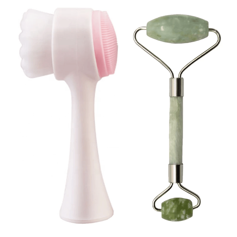 Beauty Set Masaj Facial, Perie pentru curatare si Piatra pentru masaj Alb/Roz ABYZ®™ Beauty Set Masaj Facial, Perie pentru curatare si Piatra pentru masaj Alb/Roz ABYZ®™