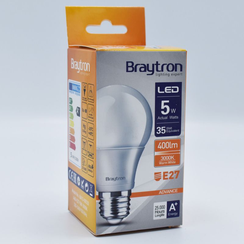 Bec led 5W (35W), E27, A60, 400 lm, lumina calda (3000K), opal, Braytron Bec led 5W (35W), E27, A60, 400 lm, lumina calda (3000K), opal, Braytron