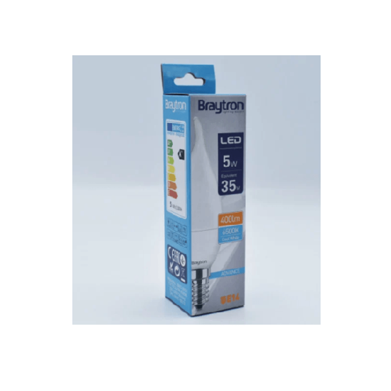 Bec led flacara 5W (35W), E14, C37T, 400lm, lumina rece (6500K), opal, Braytron Bec led flacara 5W (35W), E14, C37T, 400lm, lumina rece (6500K), opal, Braytron