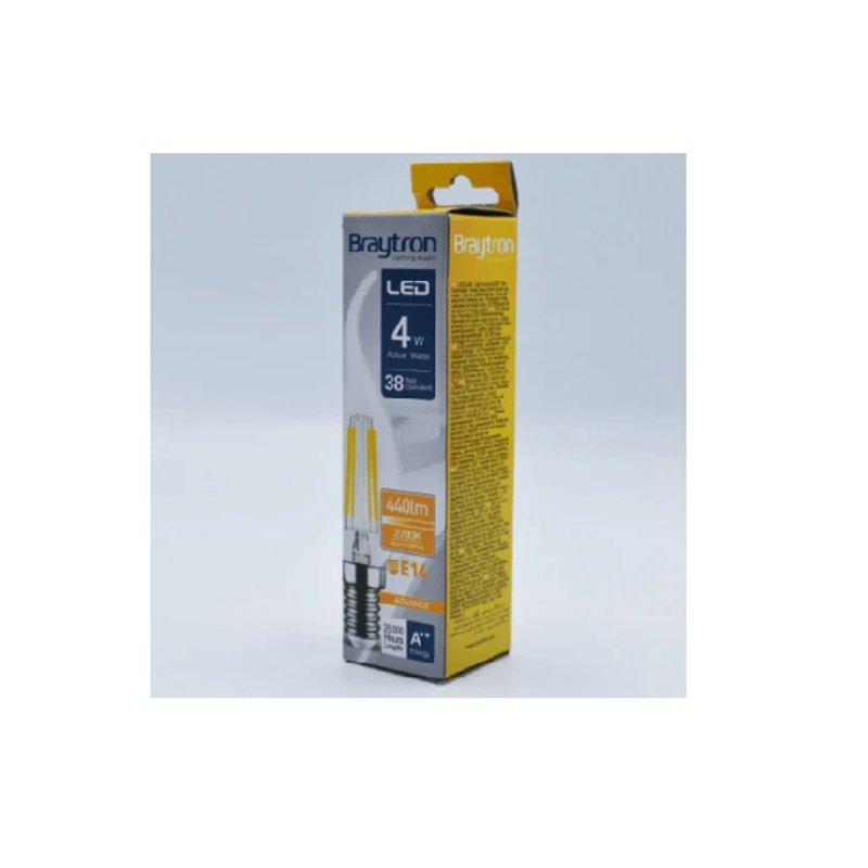 Bec led flacara Vintage filament 4W (38W), E14, 440lm, lumina calda (2700K), clar, Braytron Bec led flacara Vintage filament 4W (38W), E14, 440lm, lumina calda (2700K), clar, Braytron