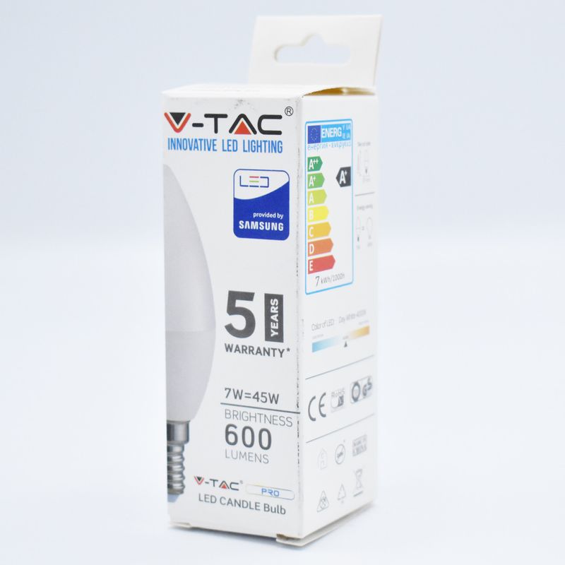 Bec LED lumanare 7W (45W) cip Samsung, E14, C37, 600 lm, lumina neutra (4000K), opal, V-TAC Bec LED lumanare 7W (45W) cip Samsung, E14, C37, 600 lm, lumina neutra (4000K), opal, V-TAC