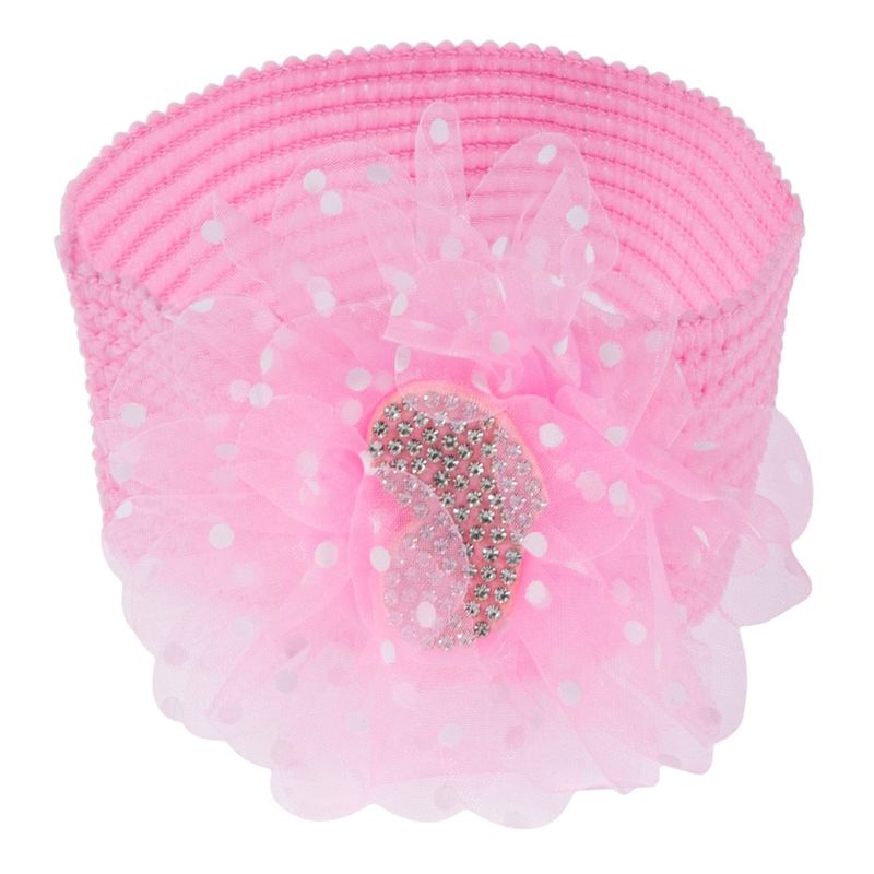 Bentita fete, model tul roz, inimi buline, floare decorativa Bentita fete, model tul roz, inimi buline, floare decorativa