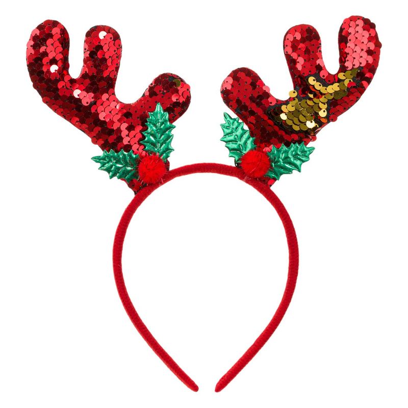 Bentita par craciun, cornite ren, paiete rosu, poliester, 11 cm Bentita par craciun, cornite ren, paiete rosu, poliester, 11 cm