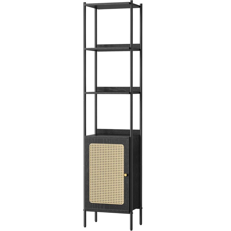 Biblioteca cu 6 etaje, cadru metalic, usa cu efect ratan Boho, 30x40x175 cm, negru Biblioteca cu 6 etaje, cadru metalic, usa cu efect ratan Boho, 30x40x175 cm, negru