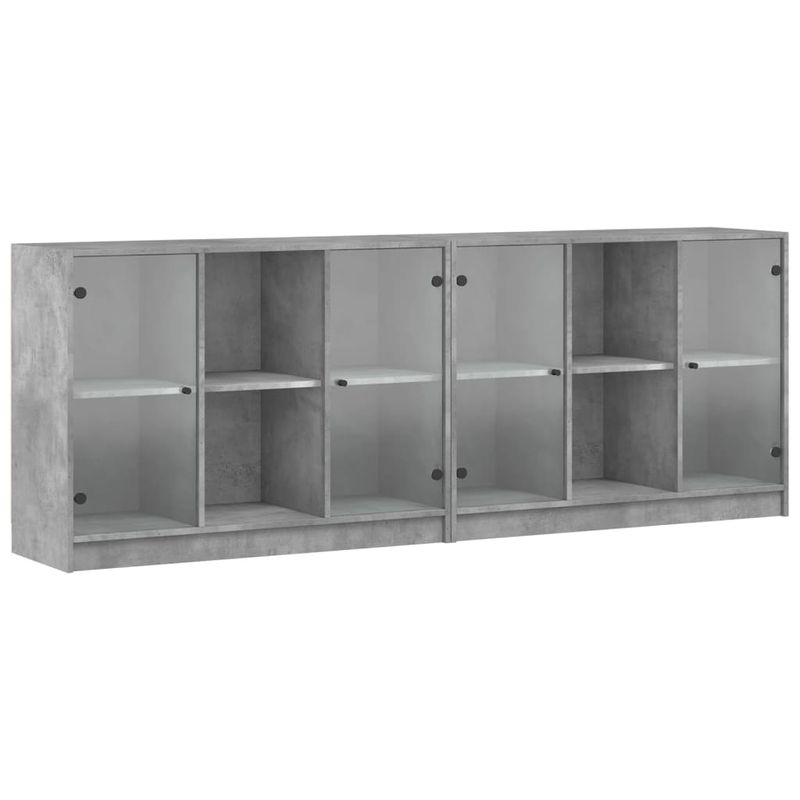 Biblioteca cu usi, gri beton, 204x37x75 cm, lemn compozit Biblioteca cu usi, gri beton, 204x37x75 cm, lemn compozit