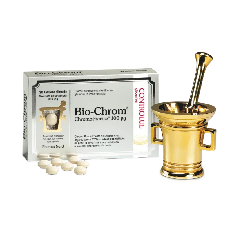 Rezerva de crom a corpului este de aproximativ 4-6 mg. Odată cu înaintarea în vârstă, concentrația de crom din țesuturi poate scădea în mod semnificativ. Ronțaitul necontrolat dintre mese și consumul alimentelor dulci pot oferi o relaxare temporară datorită ”aportului de zahăr” care ne oferă energie imediată, dar efectul dispare rapid, lăsându-ne în aceeași stare ca mai înainte. Pe termen lung, astfel de pofte pentru alimentele dulci pot afecta în mod negativ greutatea corporală. Cu un produs că Bio-Chrom putem ajuta corpul să-și mențină nivelul normal al glucozei în sânge și să prevină reapariția acestor stări.