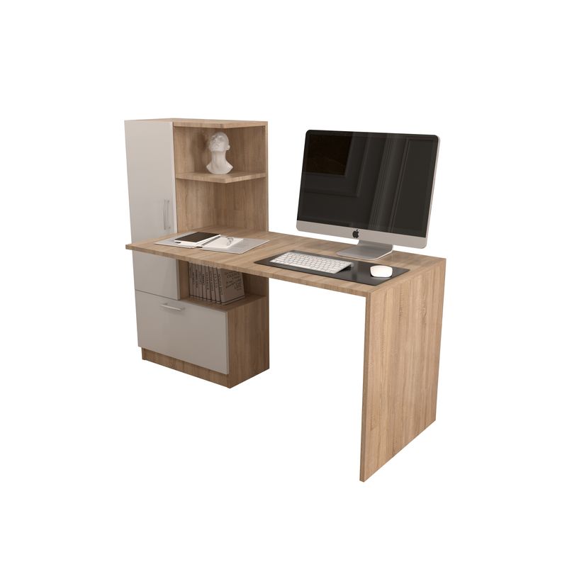 Birou Atelier Dakota, dimensiuni 150x59x120cm, culoare sonoma/alb, 2 usi Birou Atelier Dakota, dimensiuni 150x59x120cm, culoare sonoma/alb, 2 usi