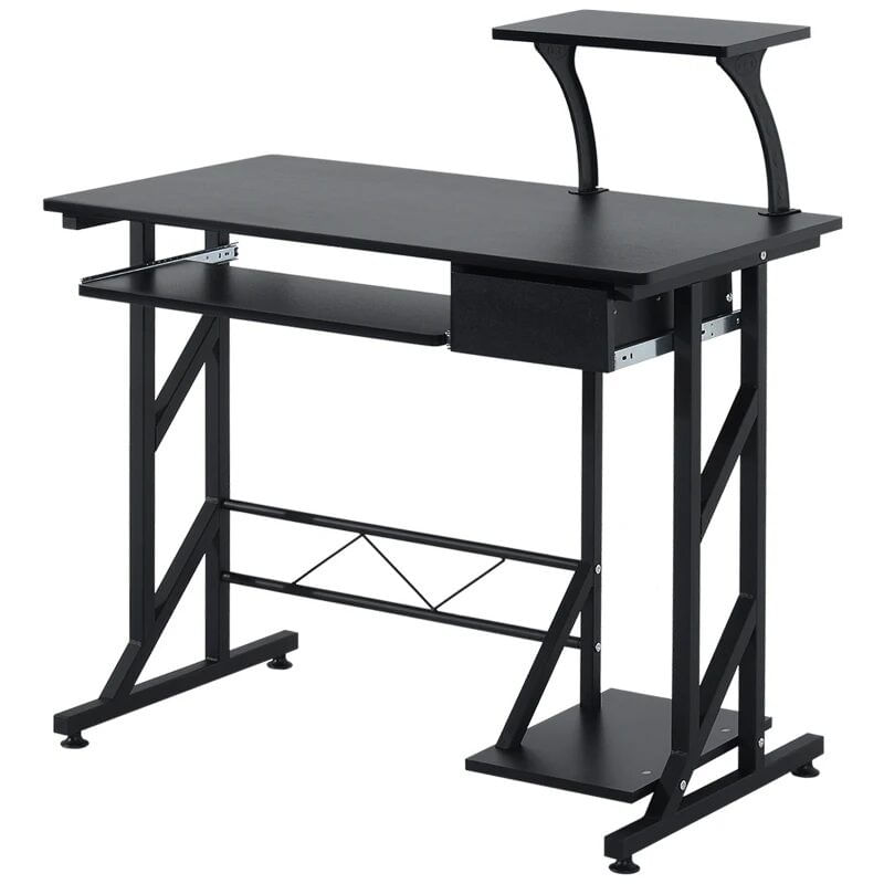 Birou calculator, otel, MDF, cu rafturi pentru accesorii si tastatura, negru, max 100 kg, 90x50x95 cm