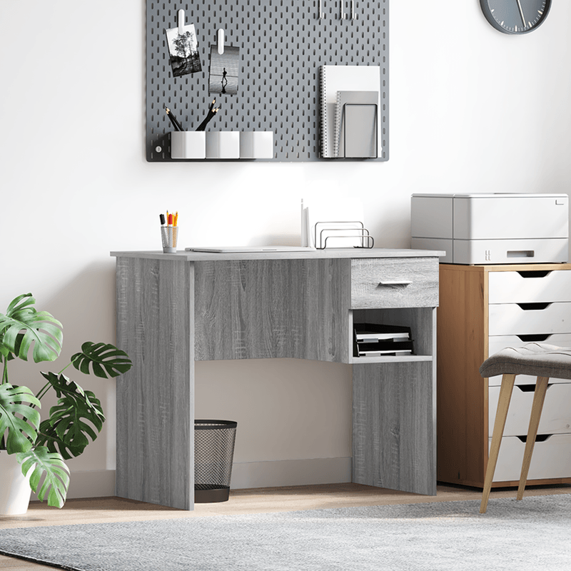 Birou cu stocare Gri Sonoma 90x49.5x75 cm Lemn prelucrat Birou cu stocare Gri Sonoma 90x49.5x75 cm Lemn prelucrat