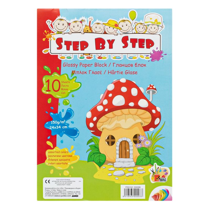 Bloc hartie glase, step by step, multicolor, 24 x 34cm, 150gsm, 10 file Bloc hartie glase, step by step, multicolor, 24 x 34cm, 150gsm, 10 file