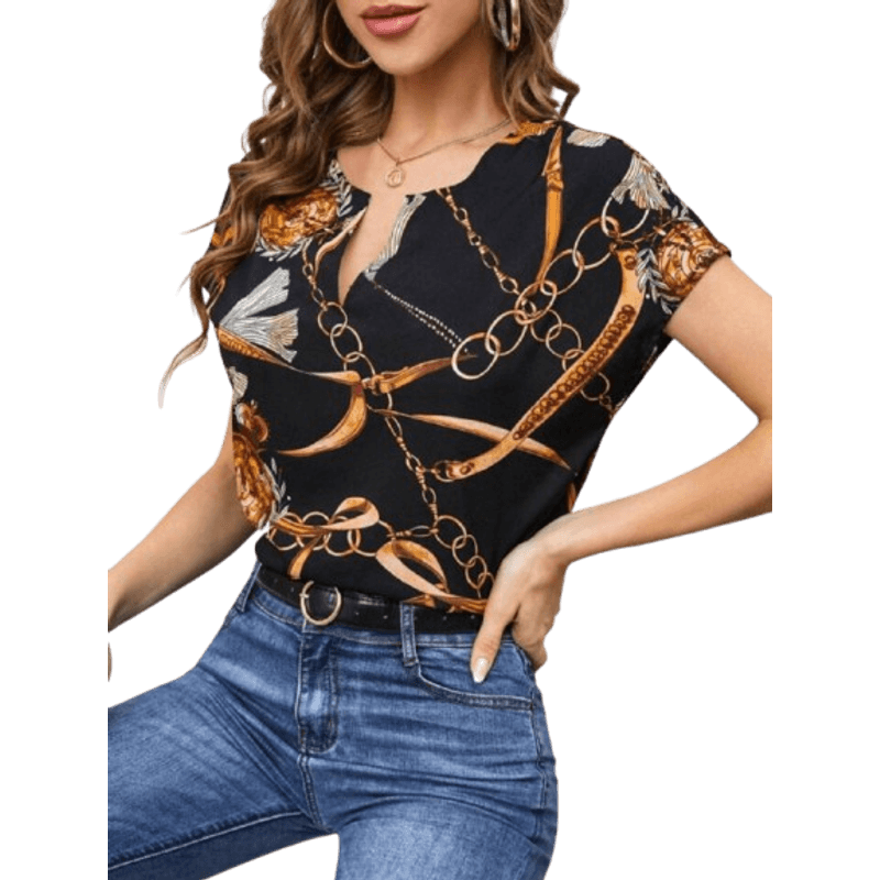 Bluza din tesatura Moskrep imprimata cu guler crestat - negru Bluza din tesatura Moskrep imprimata cu guler crestat - negru L-XL