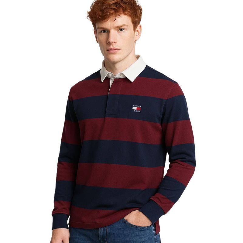 Bluza polo barbati Tommy Jeans in dungi DM0DM19621 Bluza polo barbati Tommy Jeans in dungi DM0DM19621 M INTL Rosu | Bleumarin