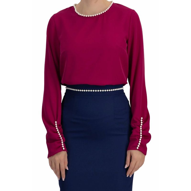 Bluza Rafinata cu Croiala Relaxata si Detalii Perlase la Mansete Bluza Rafinata cu Croiala Relaxata si Detalii Perlase la Mansete L INTL Fucsia