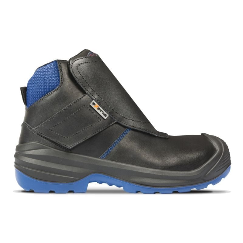 Bocanci de protectie S3 HRO SRC din piele neteda de bovina, impermeabilizata, cu bombeu nemetalic din policarbonat si lamela antiperforatie nemetalica. Protectia metatarsiana cusuta cu ata Kevlar protejeaza impotriva scanteilor de sudura. Talpa este injectata din poliuretan moale, cu strat exterior de uzura din cauciuc nitrilic, rezistenta la temperaturi inalte (caldura de contact 300 grade Celsius timp de max. 60 de secunde).