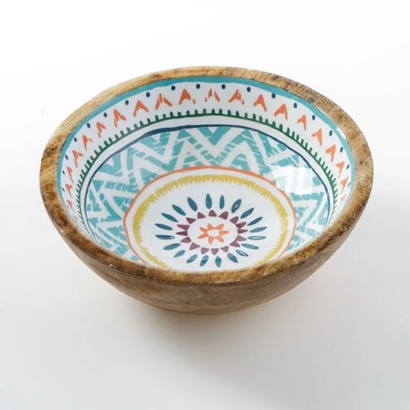 Bol din lemn emailat cu model aztec - Culoare si autenticitate pentru masa ta
