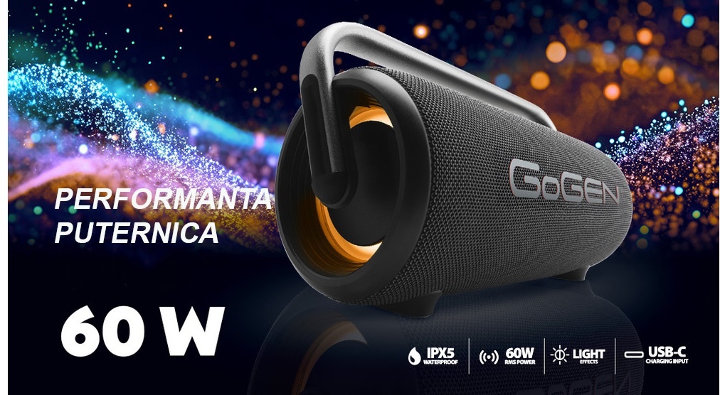 GoGEN HANDEE BPS 440 este un difuzor puternic, versatil si modern, creat pentru cei care doresc muzica oriunde si oricand. Ofera calitate audio excelenta, functii practice si o autonomie mare, fiind partenerul perfect pentru orice activitate.