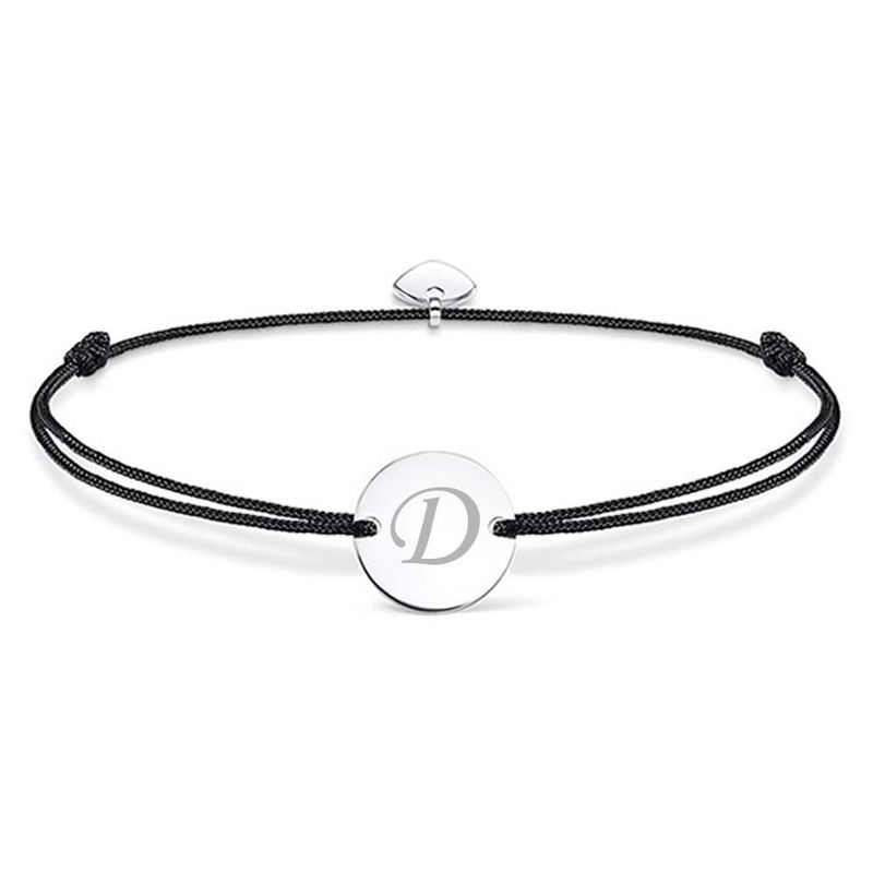 Fashion, accesorii si bijuteriiFemeiBijuterii femeiBratari femeiBratara ajustabila, cu banut rotund si inima, argintiu, gravat litera D, snur negru