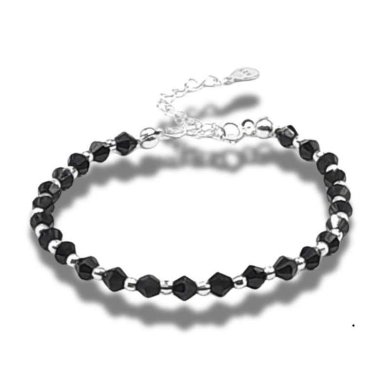 Bratara din bile de argint 925 cu cristale negre semipretioase masura 15 - 22 cm Bratara din bile de argint 925 cu cristale negre semipretioase masura 15 - 22 cm