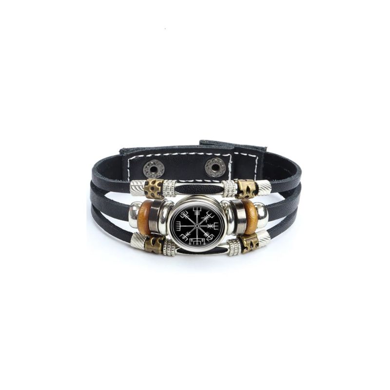 Bratara din piele eco, CRT, simbolul vikingilor Vegvisir, compasul runic, negru Bratara din piele eco, CRT, simbolul vikingilor Vegvisir, compasul runic, negru