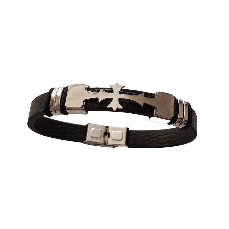 Bratara din piele ecologica, Cruce, inox, A4B87 Bratara din piele ecologica, Cruce, inox, A4B87