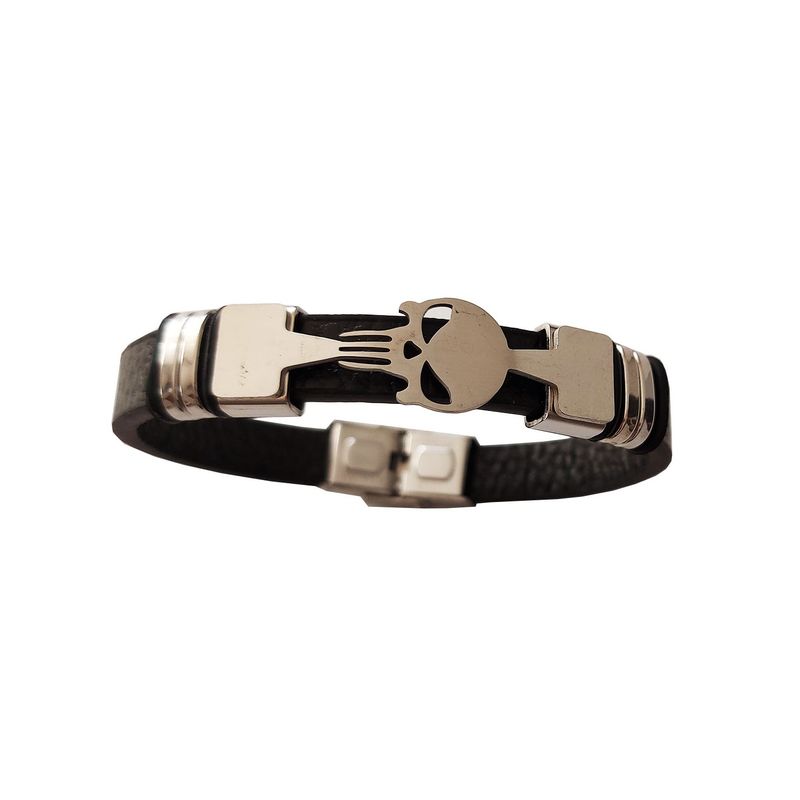 Bratara din piele ecologica, Schelete, inox, A4B84 Bratara din piele ecologica, Schelete, inox, A4B84