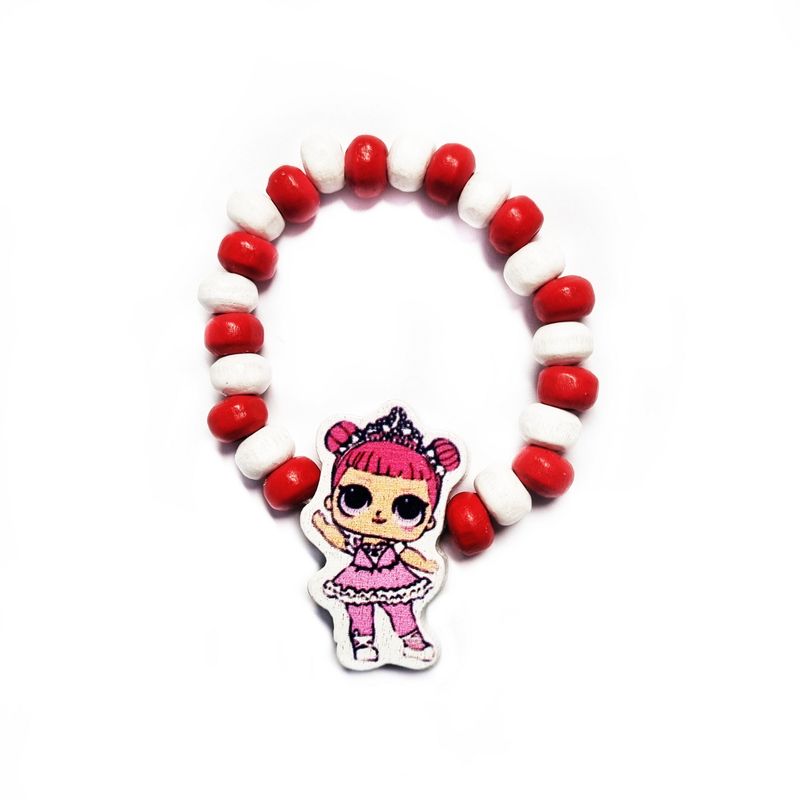 Bratara Martisor pentru copii, elastica cu fetita LOL printesa, cu margelute de lemn Bratara Martisor pentru copii, elastica cu fetita LOL printesa, cu margelute de lemn