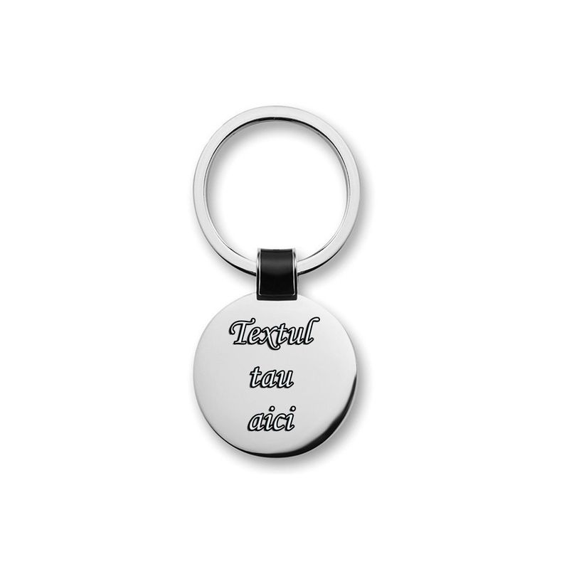 Breloc personalizat metalic in forma rotunda gravat cu textul tau Breloc personalizat metalic in forma rotunda gravat cu textul tau