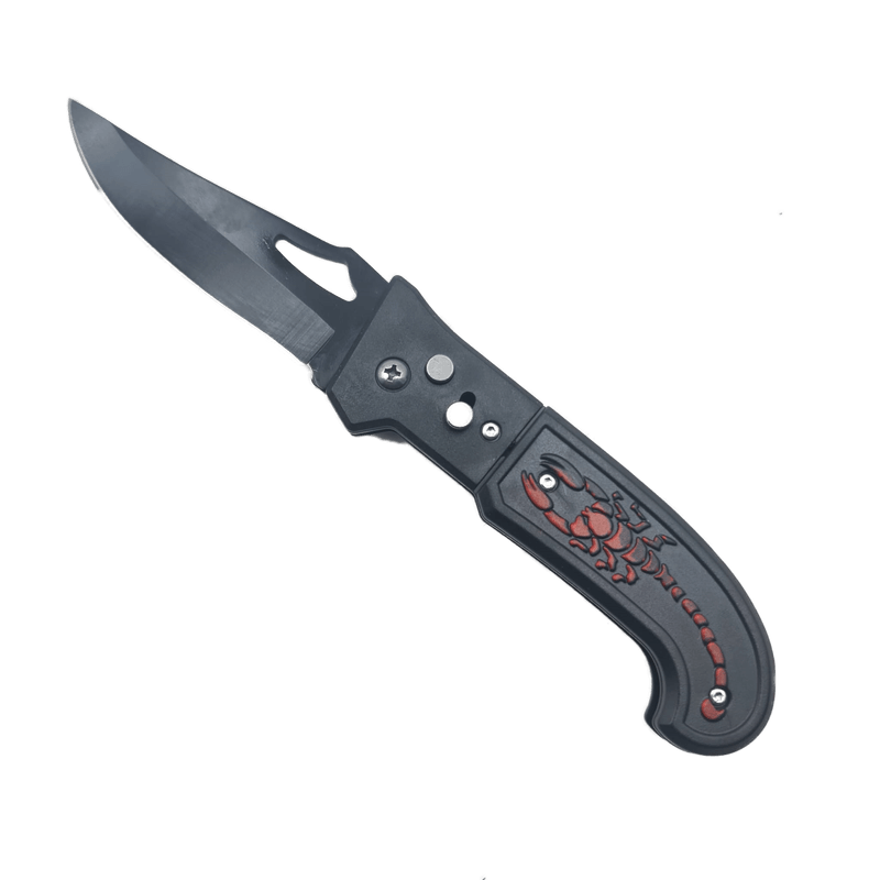 Briceag Deschidere a Lamei pe Buton, Scorpion, Sistem Prindere Curea, Negru, 20 cm Briceag Deschidere a Lamei pe Buton, Scorpion, Sistem Prindere Curea, Negru, 20 cm