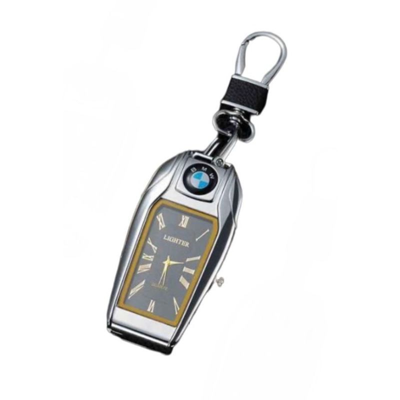 Bricheta cu gaz, antivant, breloc chei auto cu ceas, BMW , culoare: argintiu Bricheta cu gaz, antivant, breloc chei auto cu ceas, BMW , culoare: argintiu