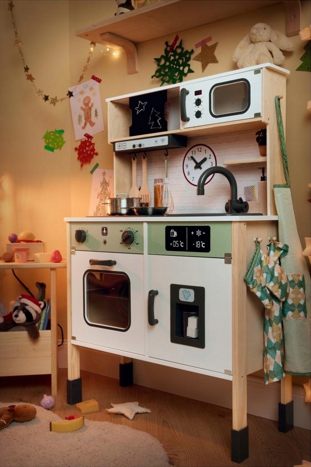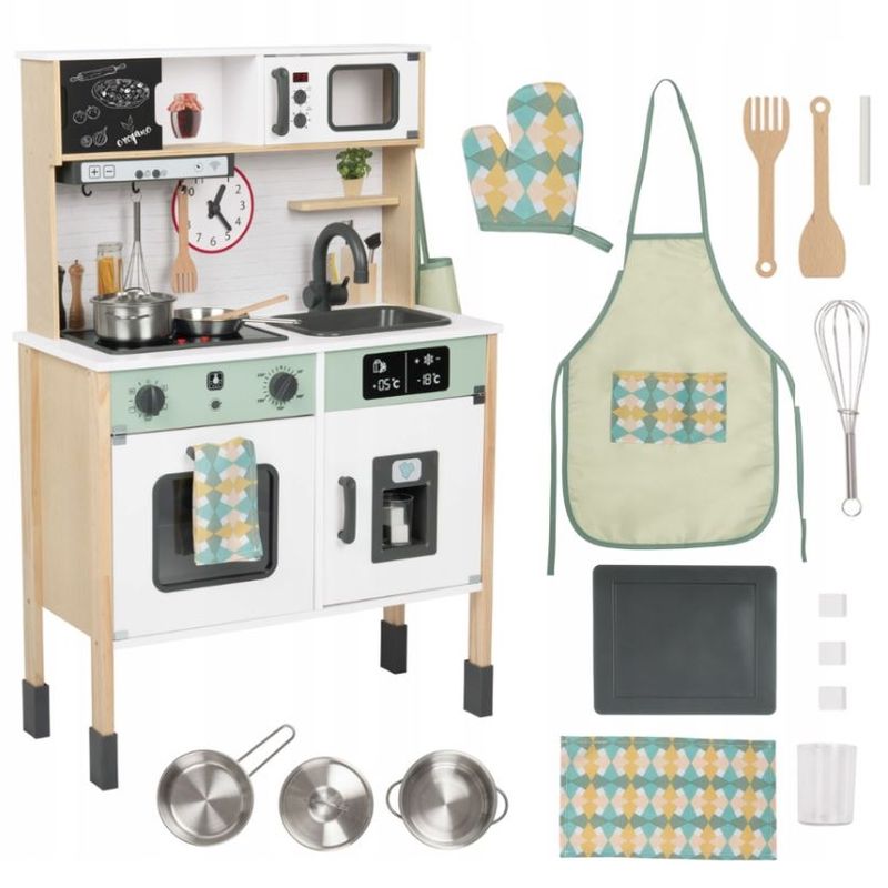 Bucatarie de joaca din lemn pentru copii, accesorii incluse, lumini si sunete, multicolor Bucatarie de joaca din lemn pentru copii, accesorii incluse, lumini si sunete, multicolor