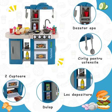 Bucatarie Pentru Copii, Circuit de Apa Real, Cuptor si Plita, Sunete si Lumini, 67 Piese, Albastra, 3 Ani + Bucatarie Pentru Copii, Circuit de Apa Real, Cuptor si Plita, Sunete si Lumini, 67 Piese, Albastra, 3 Ani +