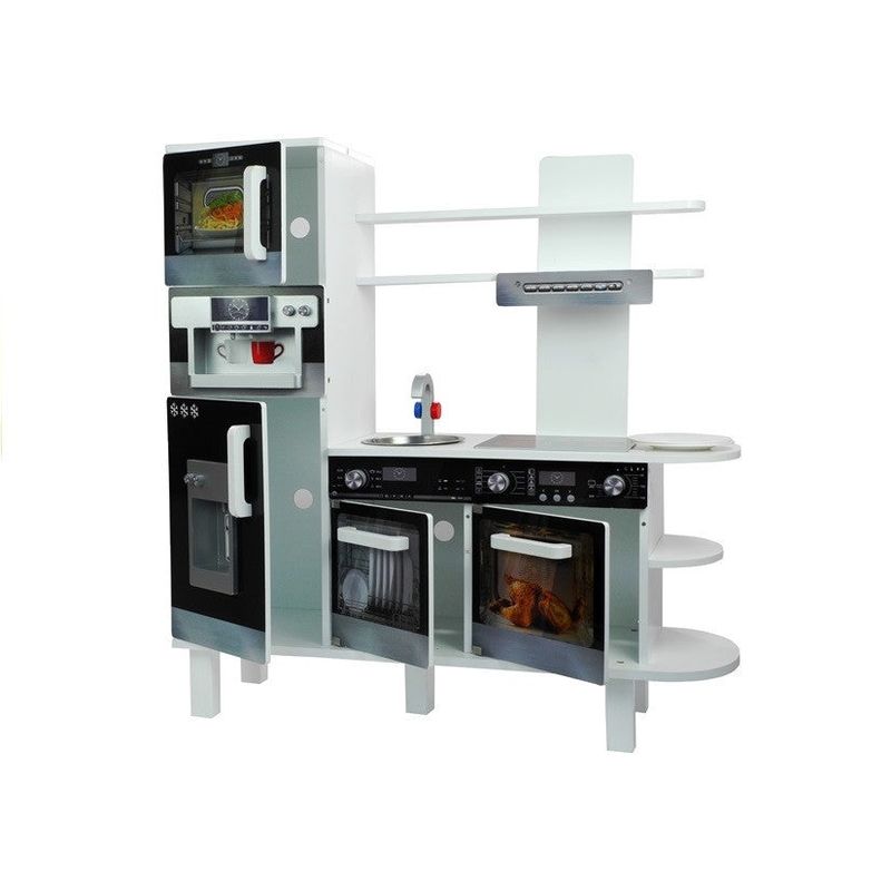 Bucatarie pentru copii, din lemn, utilata cu electrocasnice incorporabile, alb Bucatarie pentru copii, din lemn, utilata cu electrocasnice incorporabile, alb