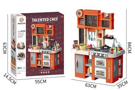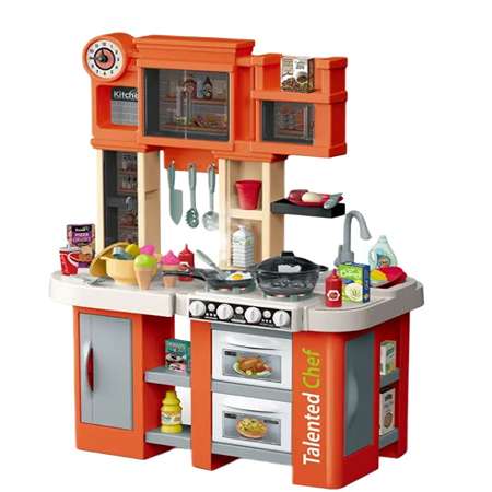 Bucatarie pentru Copii, Lumini si Sunete Reale, Apa Curgatoare si Abur, 75 Accesorii de Gatit, Portocalie, 3 Ani+ Bucatarie pentru Copii, Lumini si Sunete Reale, Apa Curgatoare si Abur, 75 Accesorii de Gatit, Portocalie, 3 Ani+