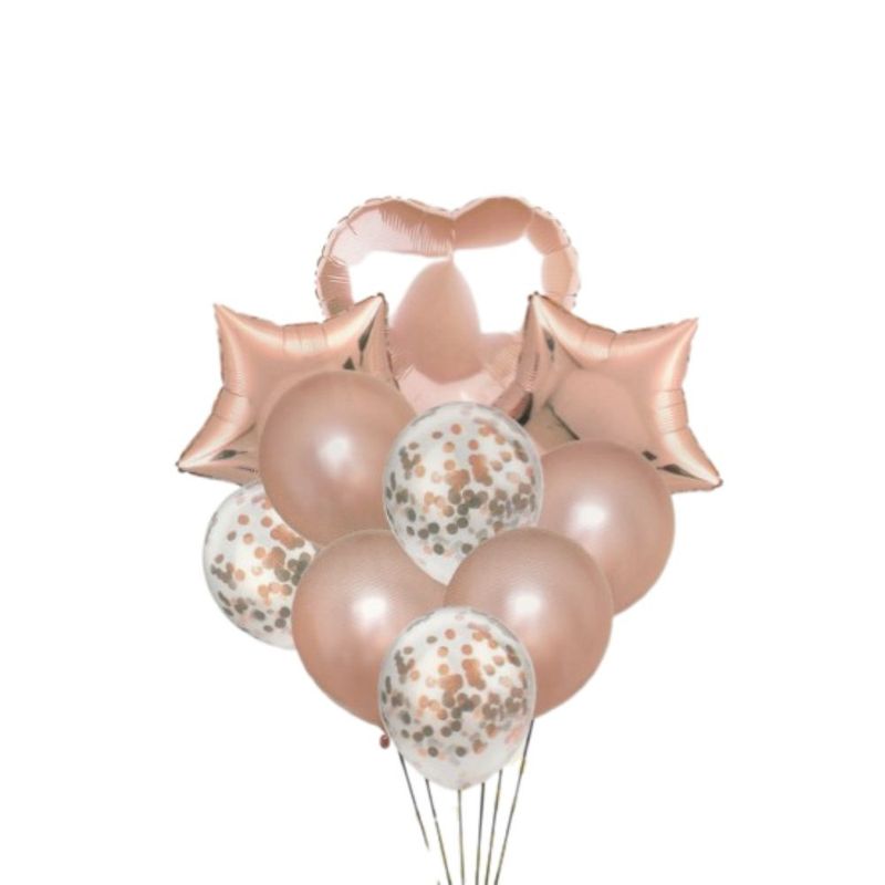 Buchet 10 baloane din latex cu confetti Magic Party, 30 cm, roz gold Buchet 10 baloane din latex cu confetti Magic Party, 30 cm, roz gold