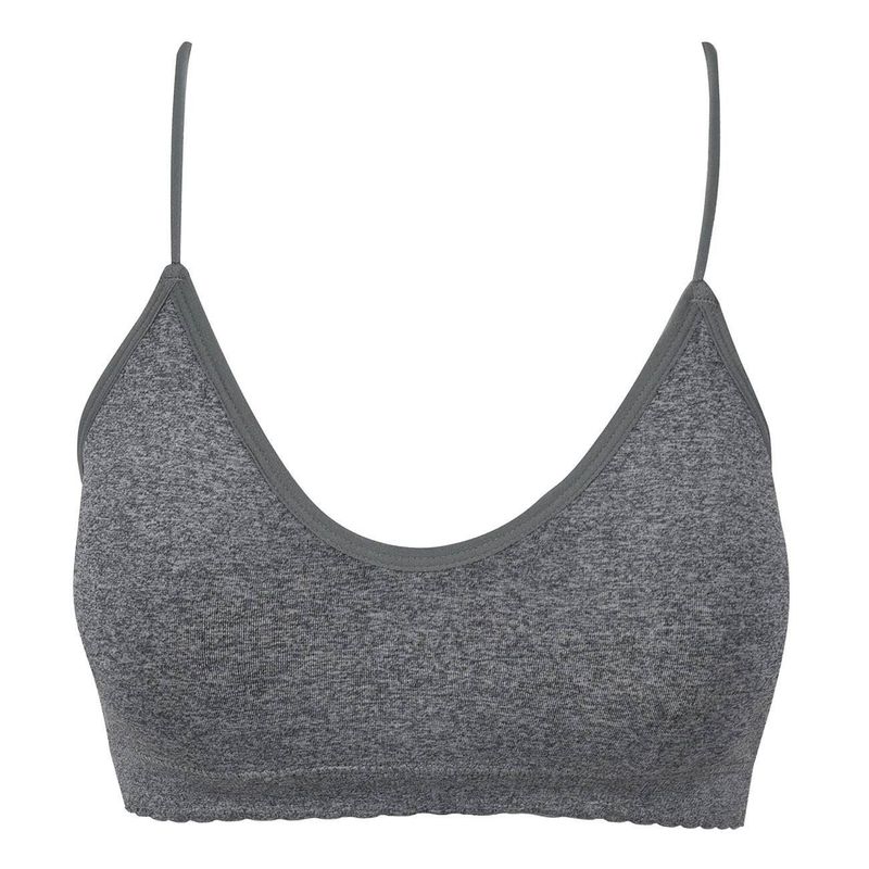 Bustiera fitness seamless, bretele subtiri, gri melanj, marime unica, pernute detasabile Bustiera fitness seamless, bretele subtiri, gri melanj, marime unica, pernute detasabile