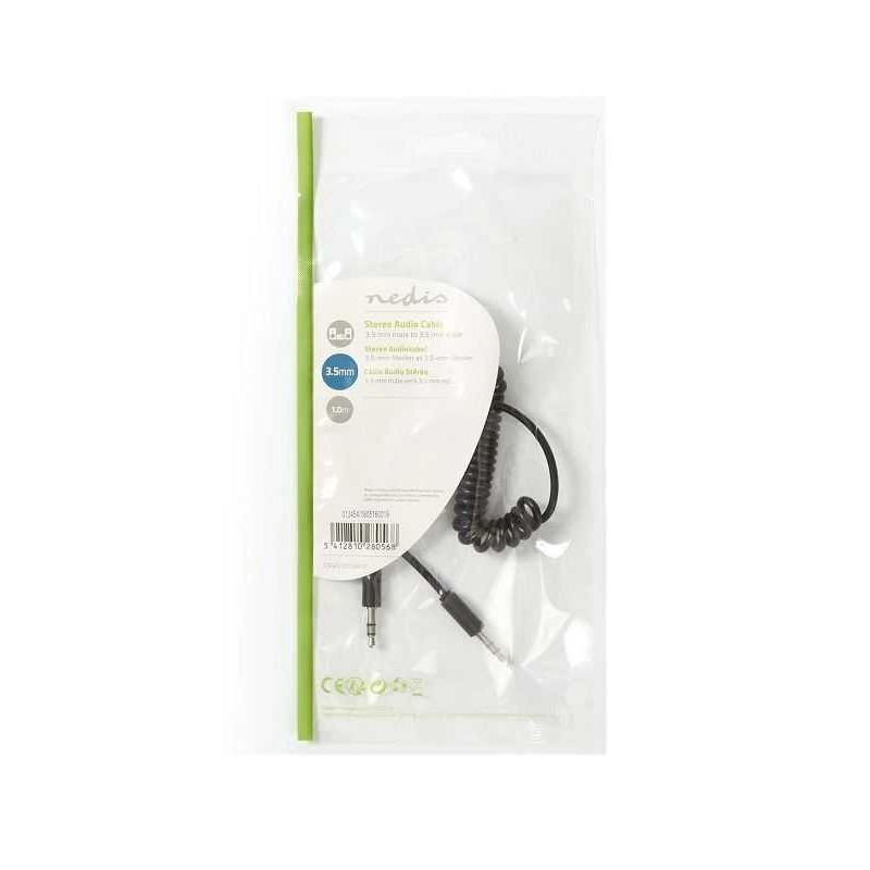 Cablu audio stereo Jack 3.5 mm tata - 3.5 mm tata 1m spiralat negru Nedis Cablu audio stereo Jack 3.5 mm tata - 3.5 mm tata 1m spiralat negru Nedis