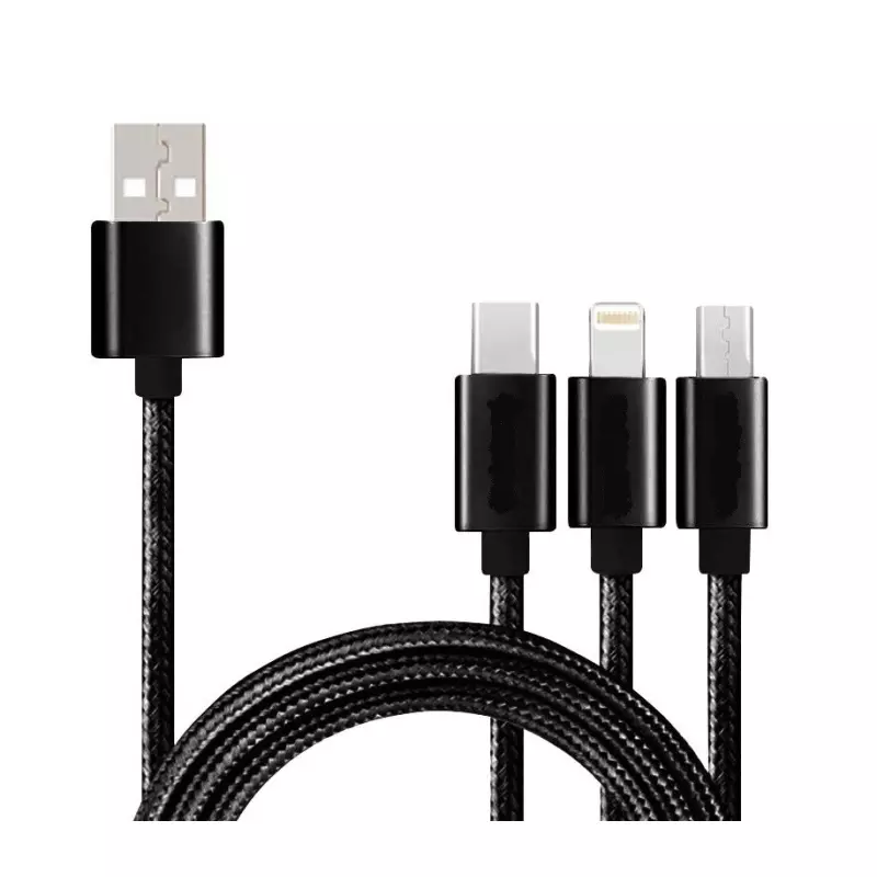 Cablu de incarcare rapida 3 in 1, universal, 1m,Gonga® Negru Cablu de incarcare rapida 3 in 1, universal, 1m,Gonga® Negru