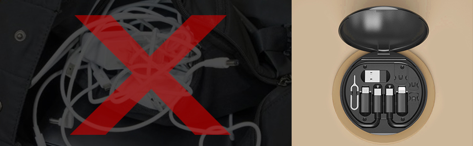 | Ejector Pin Pe langa faptul ca serveste ca ejector pentru cardul SIM al telefonului tau mobil, cutia pentru cablu de incarcare USB C este, de asemenea, un instrument util, care te poate ajuta sa ejectezi piesele mici. | Multiple Use Satul de a cara o gramada de cabluri si adaptoare pentru toate dispozitivele tale? Cutia noastra inovatoare de adaptoare universale compacte este aici pentru a-ti simplifica viata. |