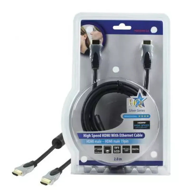 Cablu HDMI - HDMI 2m aurit OFC v1.4 High Speed cu Ethernet HQ.