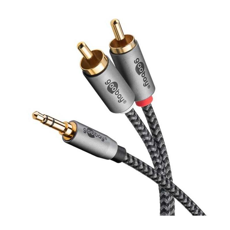 Cablu stereo premium extrem de flexibil textil 1m Jack 3.5 mm tata - 2x RCA tata negru Goobay Plus 65285.