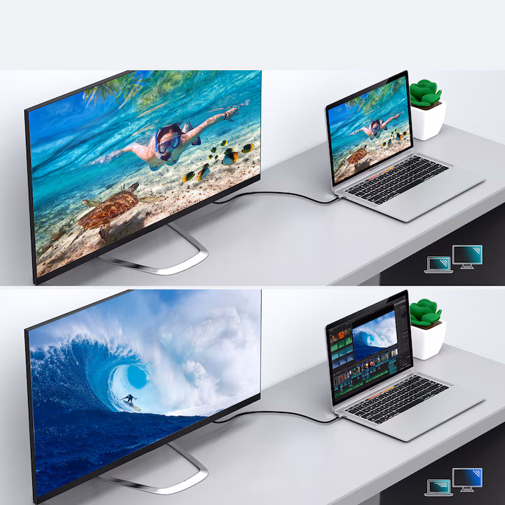 - Cablul este folosit pentru a transfera imagini si sunet de la un dispozitiv cu un port USB de tip C la un televizor, monitor sau proiector cu un port HDMI. Cu acesta, puteti afisa continutul ecranului computerului, laptopului sau telefonului pe un ecran mai mare.