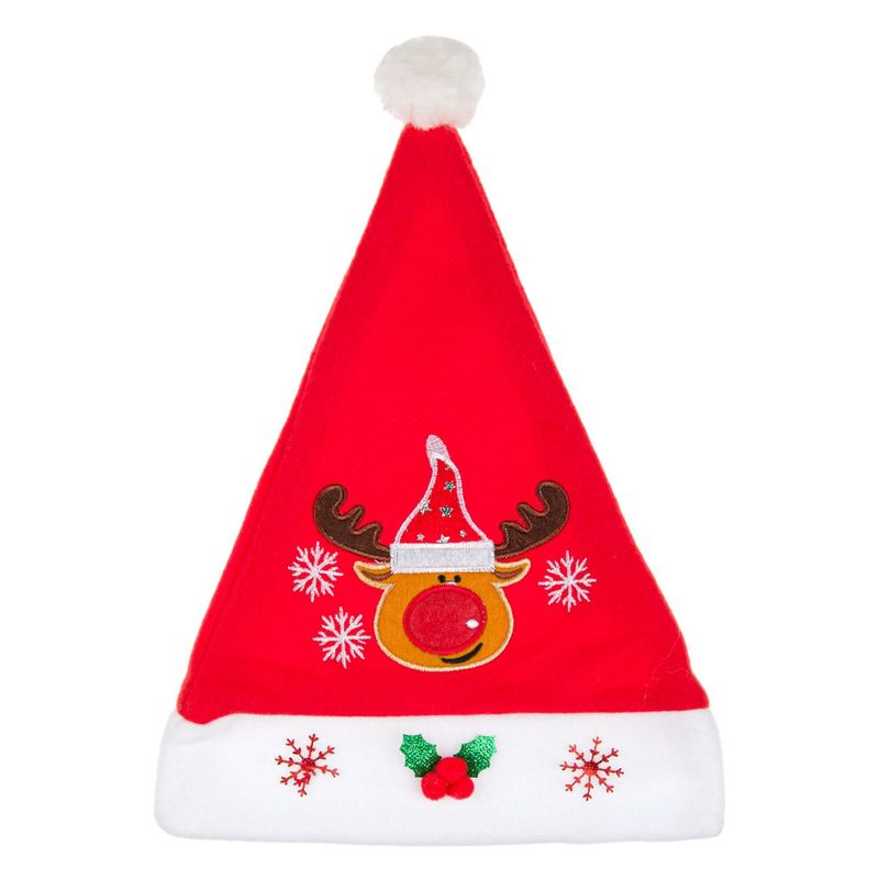 Caciula copii, model ren, pompon alb, rosu, poliester, 34cm Caciula copii, model ren, pompon alb, rosu, poliester, 34cm