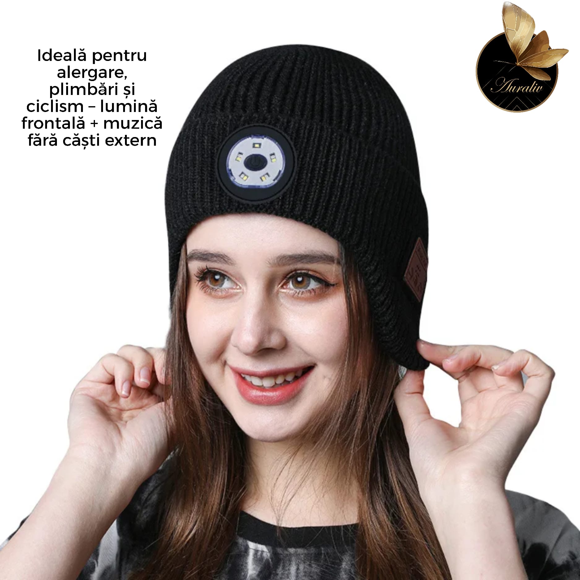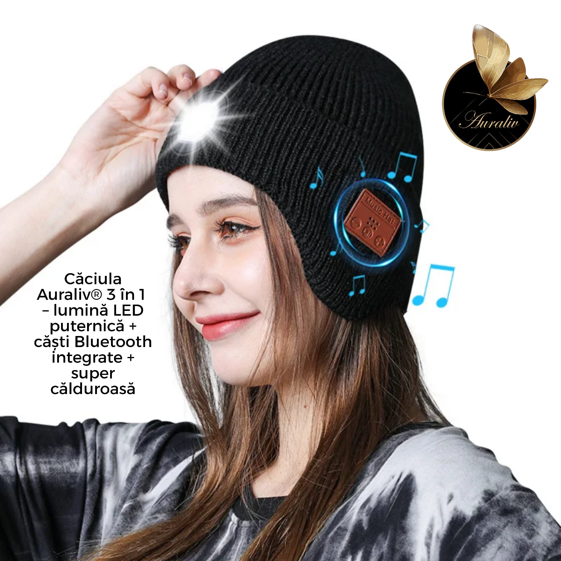 Experimenteaza confortul suprem al iernii cu Caciula Inteligenta Auraliv® 3 in 1, accesoriul modern care combina tehnologia cu utilitatea. Proiectata pentru activitati in aer liber, mobilitate urbana si momente de relaxare, aceasta caciula iti ofera lumina LED frontala reincarcabila, casti Bluetooth integrate si un material gros, calduros si elastic pentru protectie maxima in sezonul rece.