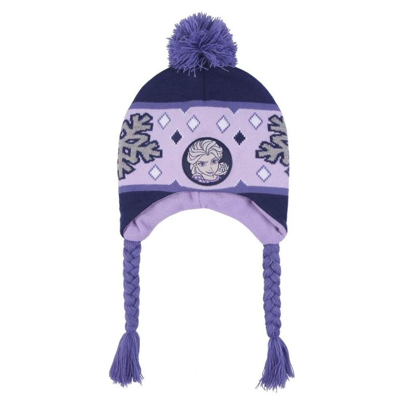 Caciula pentru copii, Frozen, model Elsa, cu pompon si urechi, mov Caciula pentru copii, Frozen, model Elsa, cu pompon si urechi, mov